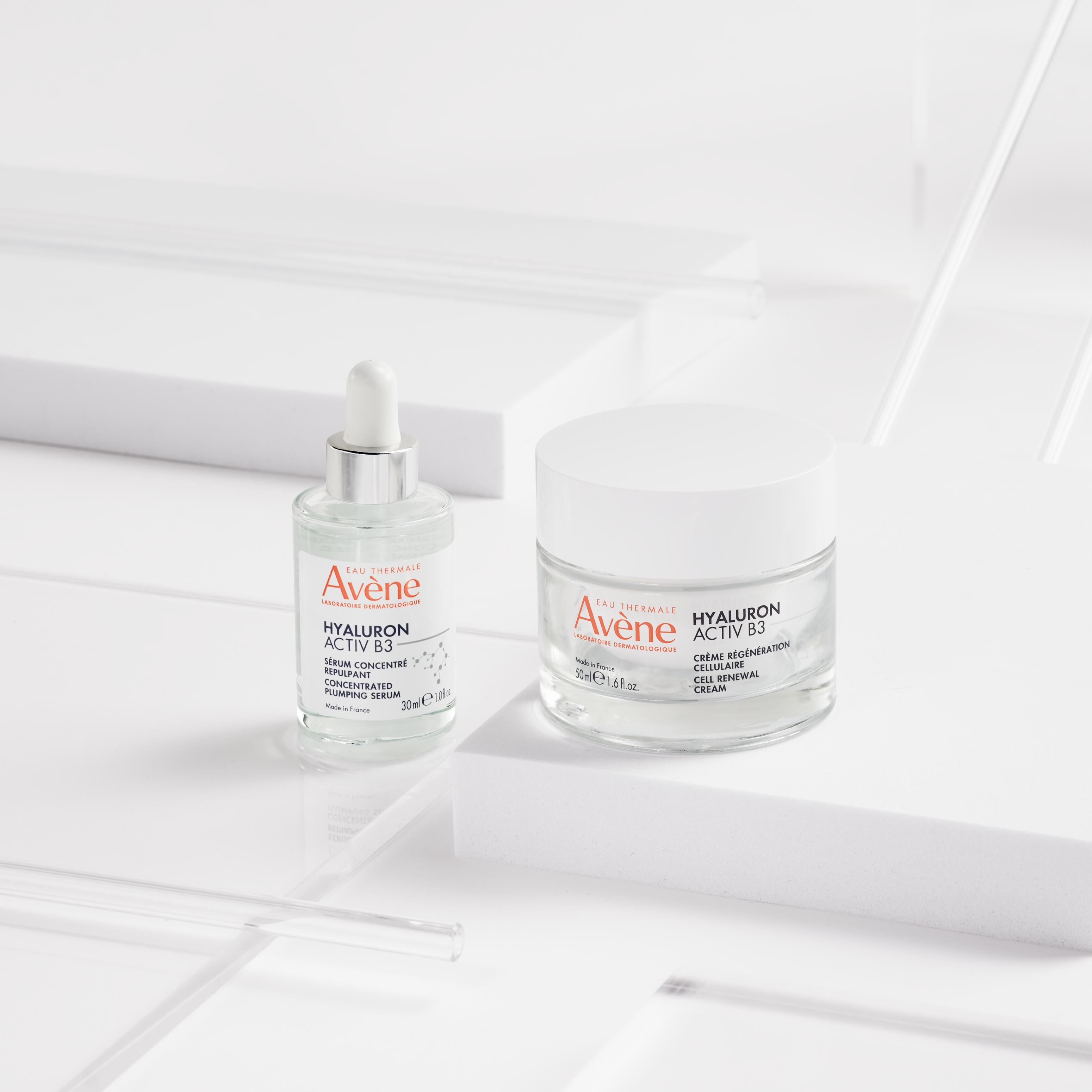 To jedna z najważniejszych substancji w pielęgnacji anti-aging. Kwas hialuronowy wiąże wodę w skórze, dzięki czemu zmarszczki mimiczne stają się mniej widoczne, a skóra zachowuje gładkość i sprężystość. Kwas hialuronowy, nie tylko skutecznie nawilża skórę, ale też zapewnia odpowiednie środowisko dla pozostałych składników aktywnych, tworząc z nimi silnie nawilżające i regenerujące duety. Produkty Avene Hyaluron Activ B3 posiadają w swoich składach opatentowane dla marki Avene cząsteczki Kwasu hialuronowy o masie 120 kDA , mające zdolność do aktywacji szlaku endogennej produkcji kwasu hialuronowego. Dzięki temu ta cząsteczka nie tylko nawilża skórę jak klasyczny HA, ale dodatkowo wypełnia zmarszczki.